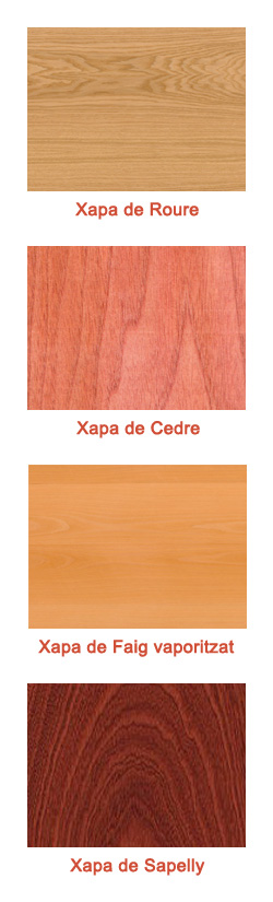 Selecciona.... DM per pintar-hi Xapa de Roure Xapa de Cedre Xapa de Faig vaporitzat Xapa de Sapelly Altres (consultar)